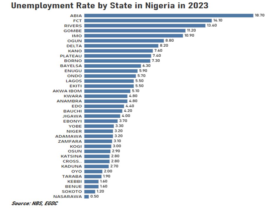 Unemployment rate in Nigerian states in 2023